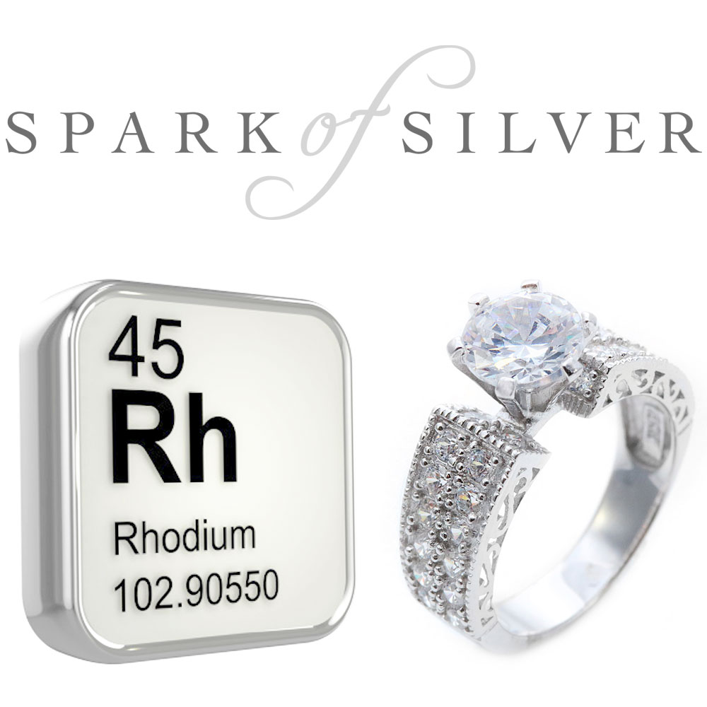 Rhodium belongs to the Platinum group of metals. Rhodium plated sterling silver jewelry will not tarnish whereas sterling silver jewelry without rhodium plating will. Rhodium is very expensive, so only a very thin plate is applied to reduce the amount of metal in the jewel. If not subject to excessive friction and wear, rhodium plated sterling silver jewelry will retain it’s look indefinitely. Rhodium plated sterling silver jewelry is the best type of sterling silver jewelry to buy on the market cause it will never tarnish, looks better than real white gold, and a tenth of the price. Rhodium plated sterling silver jewelry looks like white gold jewelry, because white gold jewelry is also plated with rhodium.